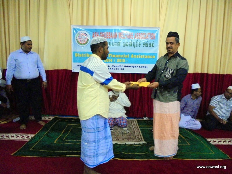 வறுமைக் கோட்டிற்கு கீழுள்ள மக்களின் வாழ்வாதாரத்தை மேம்படுத்துவதற்காக வருடா வருடம் தெரிவு செய்யப்படும் குடும்பங்களுக்கு வழங்கப்படும் நிதியுதவி இம்முறை முதல் கட்டமாக 50 குடும்பங்களுக்கு 02-02-2015 திங்கட்கிழமை அன்று வழங்கிவைக்கப்பட்டது.